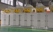 4、加熱方式:采用燃氣加熱盤管+熱風循環。采用全循環換氣方式,設備兩側安裝大風量離心式高溫風機,進行熱風循環,爐內兩側面出風孔板出風,右部回風使設備在整個加熱過程中具有良好的溫度均勻性。